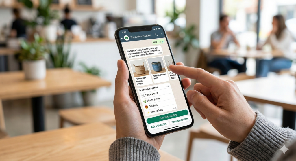 Conversational commerce on WhatsApp is the use of chat-based interactions to guide users from product discovery to purchase within a single conversation.